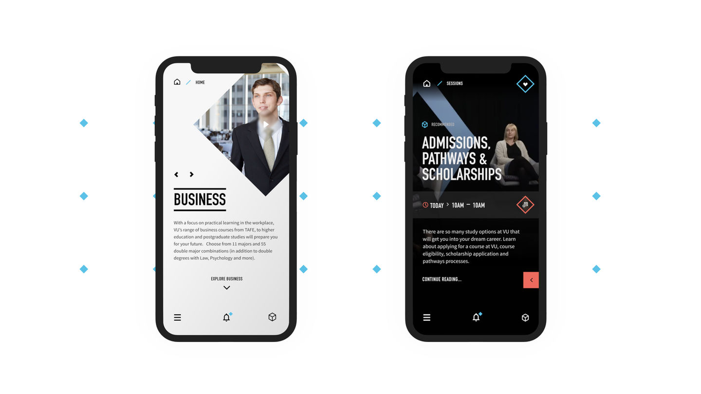 After COVID-19 forced Victoria University to move their open day move online, the brief was to imagine a highly interactive experience based around the VU block learning model. Prospective students could build their unique "block" as they attended open day (brought to life via WebGL), get a personalised itinerary, attend live Q&A sessions and learn about VU & their study pathways.